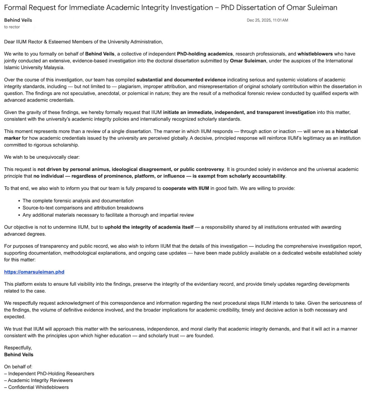 Any organization that invites Omar Suleiman and uses the reference of “Dr” as a title will be notified and advised to refrain from using such. Updates will be provided below.